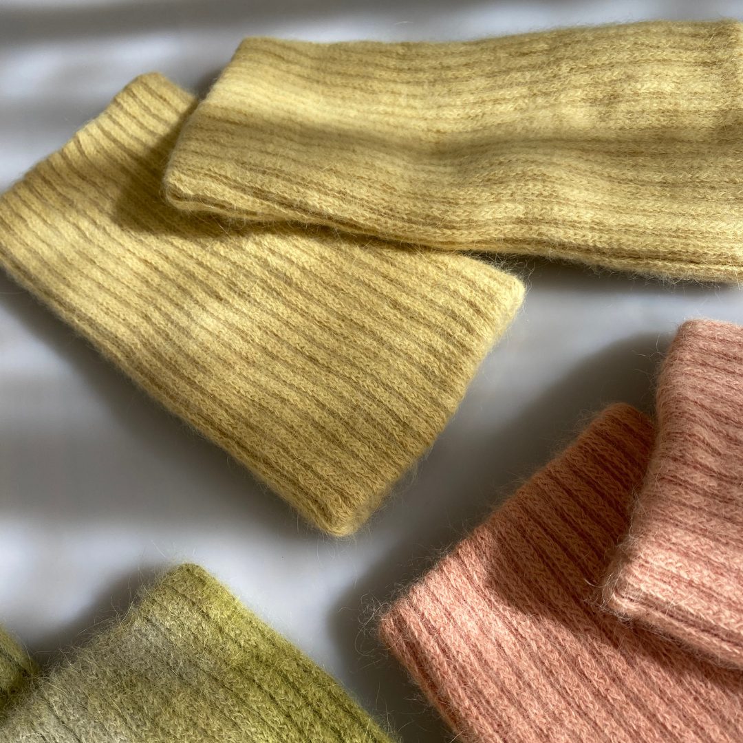 空気を抱きしめるような、しっとりふわふわのアンゴラウォーマー。 繊維が長く、自然な毛羽立ちをもつアンゴラならではの、やさしさとあたたかさを同時にまとう一枚です。 レッグにもアームにも使える、冬の頼れる“リッチウォーマー”。