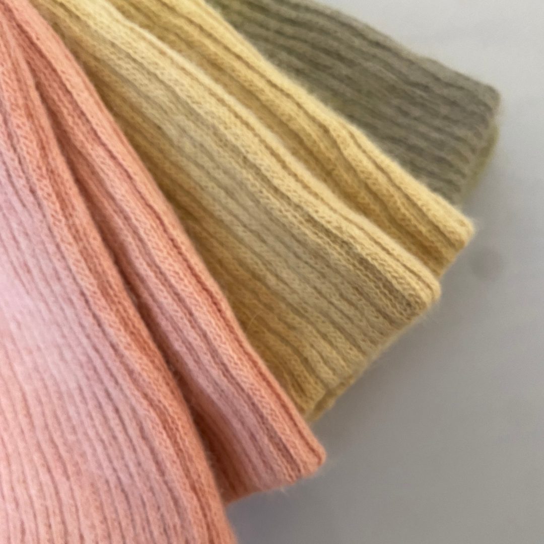 生地はしっかり厚みのあるリブ編み。ずれ落ちにくいのに、ふんわりやさしく伸びるので、長時間つけていても締め付け感がありません。