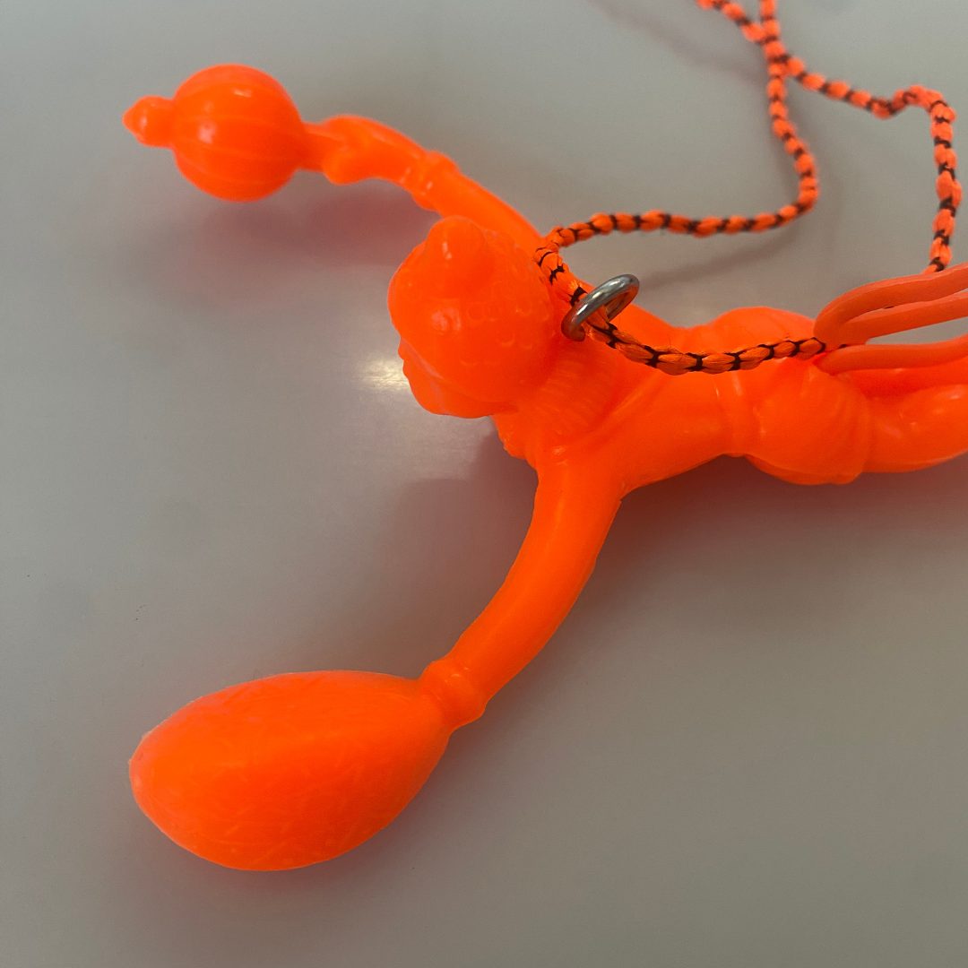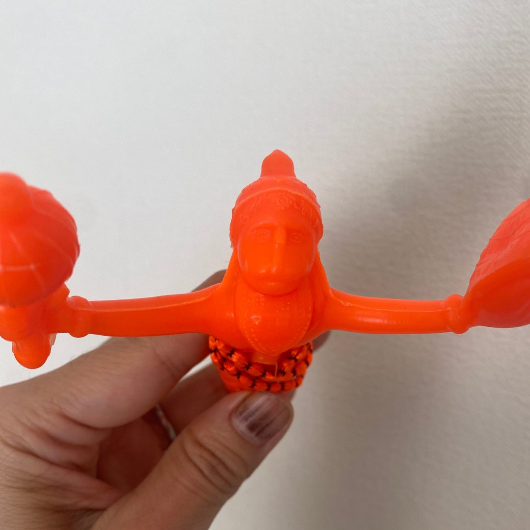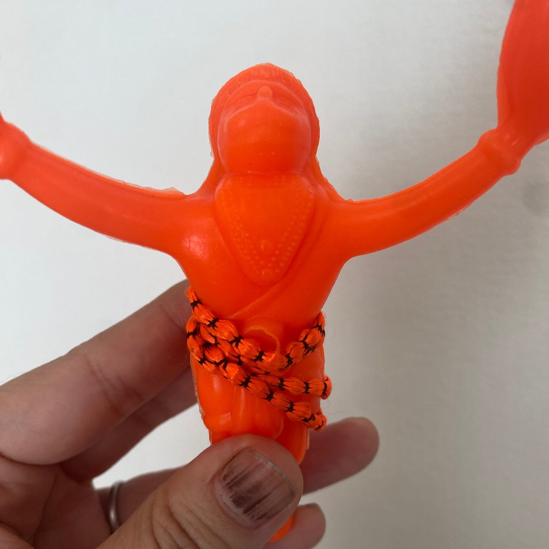 インド・バンガロールの寺院で出会った、ネオンオレンジの小さなハヌマーン神のお守りです。 車やバッグにぶら下げると、空を飛ぶような姿で持ち主の旅路と日常をそっと守ってくれると言われています。