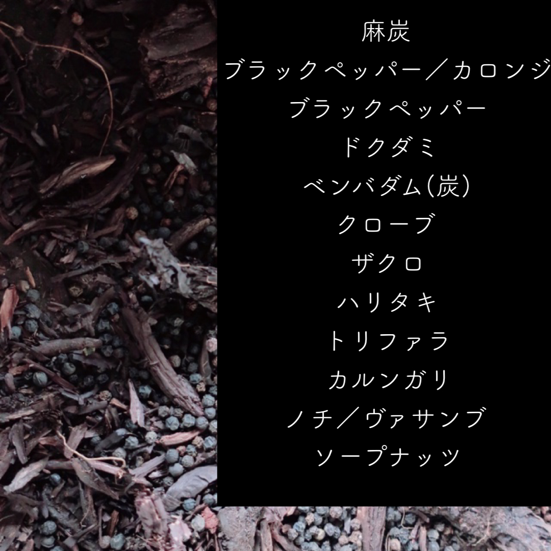 麻の炭や薬草の炭のチカラを借りてココロやカラダにこびりついた感情も溜まっていた老廃物もさようなら。ココロやカラダをあたためる性質のある薬草ハーブを豊富に使ったミラクルブレンドです。