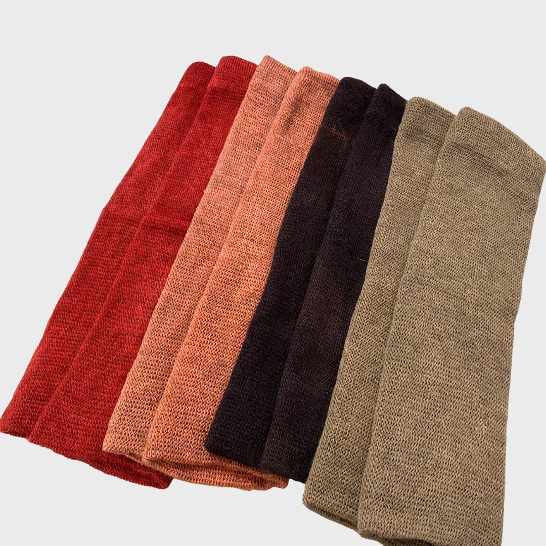 内側はふかふかのワイルドシルク、外側はやさしいウール。 一見きゅっと見えて、着けると驚くほど心地よいフィット感。 冷えやすいふくらはぎを、やさしく温め、めぐりを支えます。